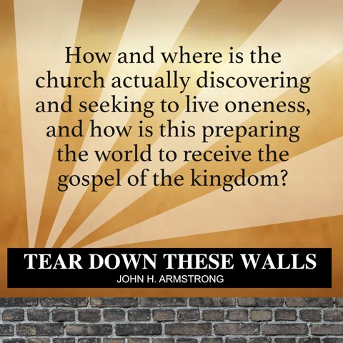 “John Armstrong’s journey is full of integrity and courage. His arguments in this book are completely persuasive and inspiring. In a time when traditional ecumenism seems tired, the call to unity needs fresh voices rooted in action close to the ground to bring new and needed vitality to ‘tear down these walls.’ Armstrong provides this with rich biblical insight, historical clarity, and theological creativity. His examples of ‘new ecumenism’ and his insistence on rooting the call to unity in the imperative of the missional church are deeply compelling. This is required reading for anyone who knows that Jesus’ prayer for unity in John 17 remains an indisputable and unmet challenge to the church today.”